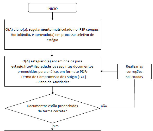 Toda a documentação deve ser encaminhada exclusivamente pelo endereço eletrônico estagio.hto@ifsp.edu.br.