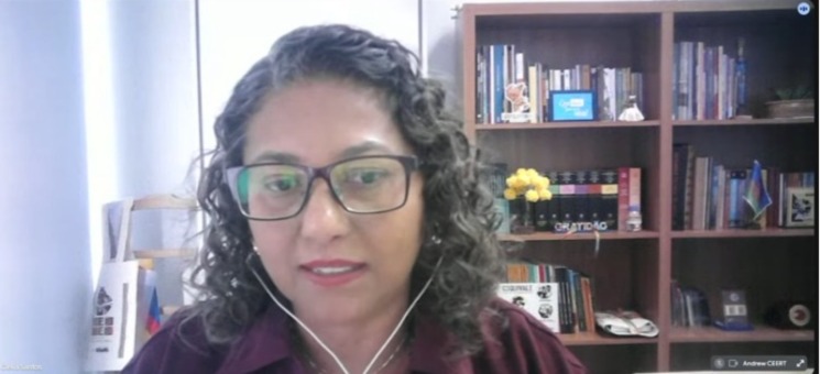 Clélia Santos, Diretora de Políticas de Educação Étnico-Racial e Educação Escolar Quilombola, da Secadi/MEC, compôs a mesa virtual salientando a necessidade de engajamento de toda a comunidade escolar na construção de uma educação mais justa e igualitária.