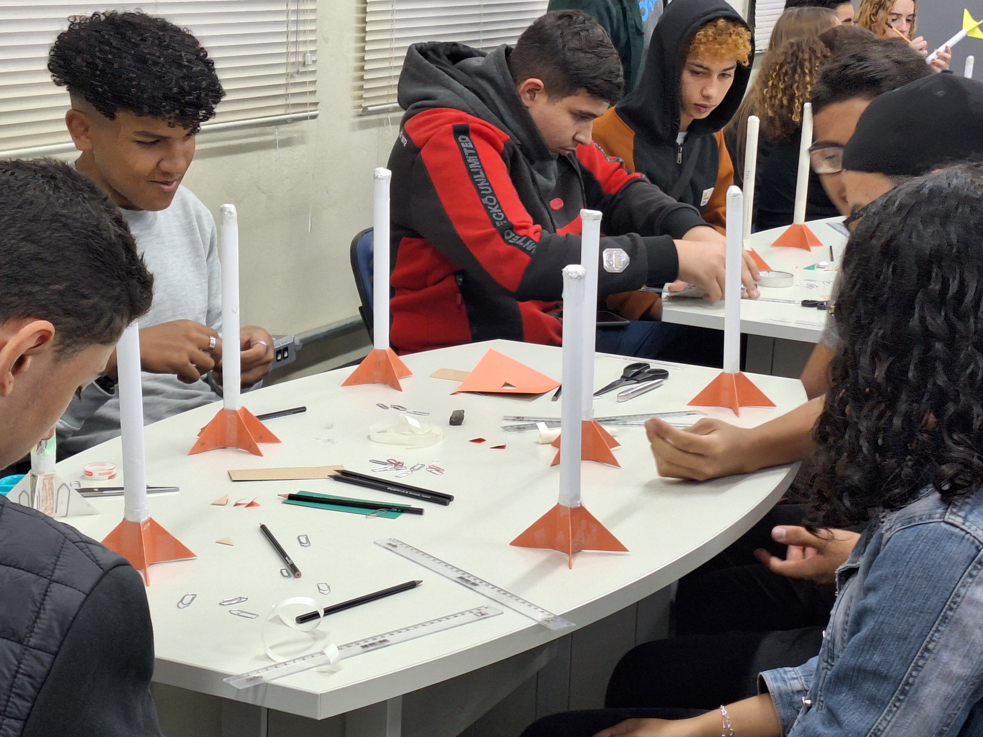 O público também pôde participar de atividades práticas com as oficinas de Arduíno, de Foguetes, de Teodolito e de Xadrez. Nesse dia, recebemos a visita da Escola Estadual Maria Antonietta Garnero La Fortezza, que trouxe os(as) estudantes do Ensino Médio para participar das oficinas e conhecer a escola.