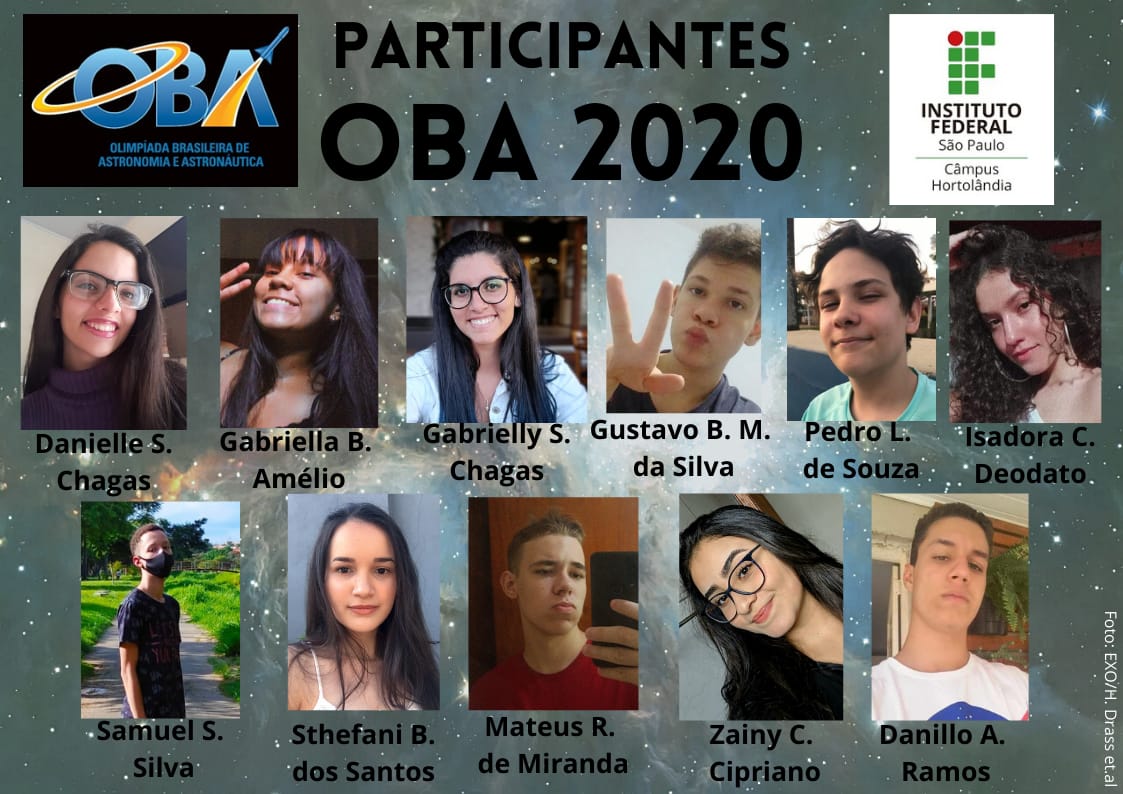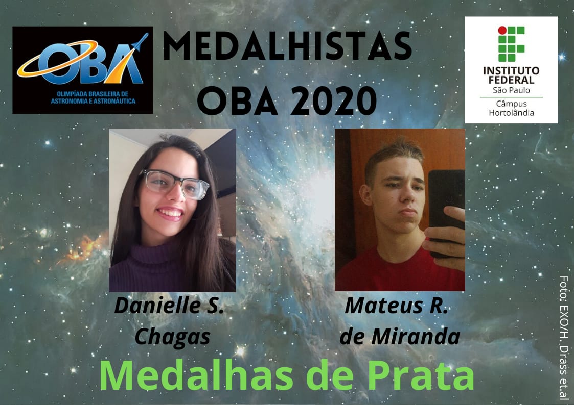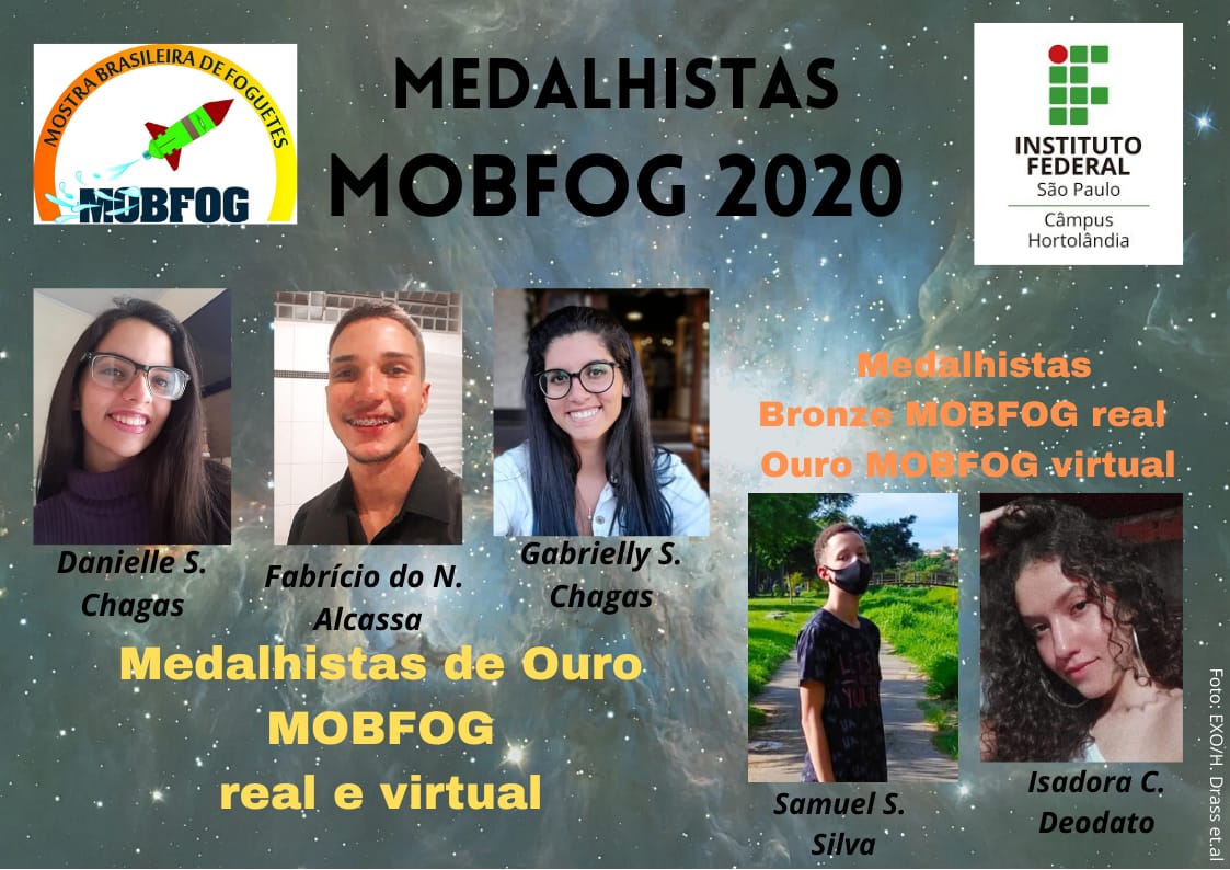 Seis estudantes do IFSP Hortolândia conquistaram medalhas na 23a Olimpíada Brasileira de Astronomia e Astronáutica - OBA e na 14a Mostra Brasileira de Foguetes (MOBFOG), eventos realizados anualmente pela Sociedade Astronômica Brasileira (SAB) em parceria com a Agência Espacial Brasileira (AEB).