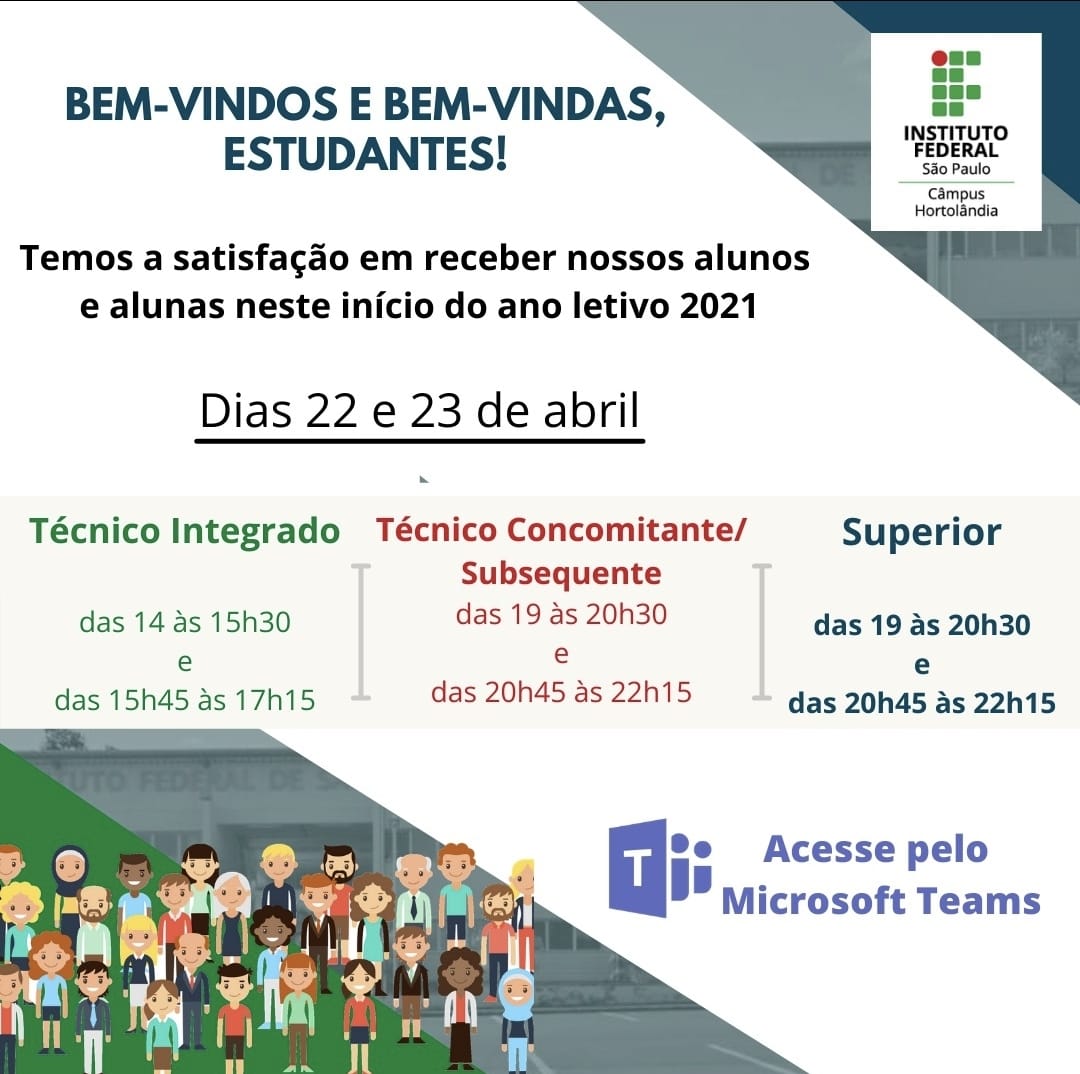 Bem-vindos e bem-vindas estudantes! Confira os dias e horários da recepção 2021